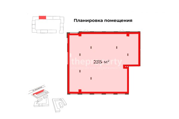 Продам коммерческое помещение с отдельным входом с улицы, общей площадью 235 кв.м. Расположено на первом этаже нового жилого комплекса в Академическом районе. Удобные подъездные пути: зона выгрузки, загрузки. Высокие потолки: 4 метра. Выделенная электрическая мощность 23,5 кВт. Удобная парковка напротив здания. Помещение с панорамными окнами, обеспечивающими отличный обзор. Согласованное место под вывеску. Вентиляция отдельная, с отдельным выходом на крышу, подойдет для любых целей. Сочетание уютной камерной застройки и современной городской инфраструктуры - новый формат в Академическом районе. Жилой квартал расположен вдоль Амундсена вблизи основных магистралей района. Это позволит быстро и удобно добраться до любой точки города: 5 минут до Преображенского парка, 25 минут до центра города. Готовое решение для успешного бизнеса или надёжных вложений. Стоимость: 180 000 руб/кв.м. Продажа без НДС. Возможность рассрочки обсуждается индивидуально. Плановый срок сдачи дома в эксплуатацию - 3 квартал 2025. Техническая документация предоставляется по запросу. Звоните, отвечу на все интересующие вопросы.
