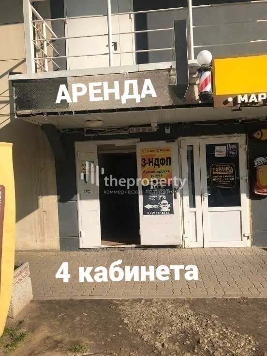 Отдельный вход сбоку здания в помещения позволят контролировать большой трафик пешеходов, проходящих от домов к остановкам и дороге . В шаговой доступности находится Сбербанк.