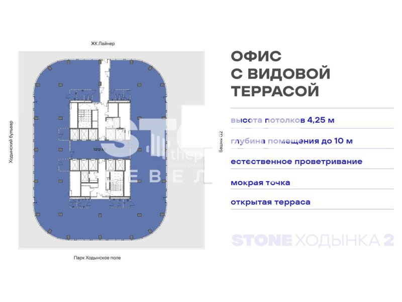 Рассрочка 0% до окончания строительства Уникальный формат коммерческой недвижимости - офисный этаж с террасой общей площадью 2075,3 кв.м. в составе премиального офисного квартала STONE Ходынка 2 с прямым выходом в парк Ходынское поле. Идеально для размещения компании численностью 259 сотрудников. Планировки офисных этажей соответствуют требованиям функционального офиса: глубина помещения - до 10 м, высота потолков - 4,25 м, шаг колонн - 8,4 х 8,4 м, отделка Shell&Core. Окна в пол обеспечат оптимальный уровень инсоляции и предусматривают возможность естественного проветривания. Видовые террасы располагаются на 5 этаже, откуда открывается впечатляющая панорама на парк Ходынское поле. Отличное место для перерывов, встреч на свежем воздухе или организации неформальных мероприятий. Вся необходимая инфраструктура находится в шаговой доступности - благодаря удобному расположению не нужно беспокоиться о погоде. Архитектурную концепцию STONE Ходынка 2 разрабатывает бюро Kleinewelt Architekten. В состав проекта войдут 3 разноэтажные башни высотой в 23, 11 и 19 этажей с динамичным рисунком фасада, объединенные торговой галереей. Транспортная доступность: - 5 мин. пешком от м. «ЦСКА» - 1,1 км до Ленинградского проспекта - 25 мин без пересадок до «Москва-Сити» - 20 мин. от м. «Динамо» Премиальный офисный квартал реализуется в концепции Healthy building: улучшенные системы вентиляции, круглогодичное кондиционирование, многоступенчатую систему очистки воздуха и биофильный дизайн. В STONE Ходынка 2 будет создана собственная развитая инфраструктура для резидентов. Здесь появятся кафе и ресторан с выходом на летнюю веранду. В галерее откроются магазины и столовая, а также фитнес-студия и спа-центр. Еще одним важным элементом инфраструктуры станет конференц-зал. Кроме того, в проекте предусмотрена арт-галерея, способствующая развитию креативного мышления будущих резидентов. STONE - девелопер коммерческой и жилой недвижимости классов бизнес+ и премиум в Москве. С 2022 года занимает лидирующую позицию на офисном рынке (рейтинг РБК) . За 18 лет компания вывела на рынок 28 проектов. Компания имеет самый масштабный проектный портфель офисной недвижимости класса А на московском рынке (данные NF Group) и возглавляет топ-6 устойчивых девелоперов, согласно исследованию FResearch (Forbes) . ID. 21070 [#7595973#]