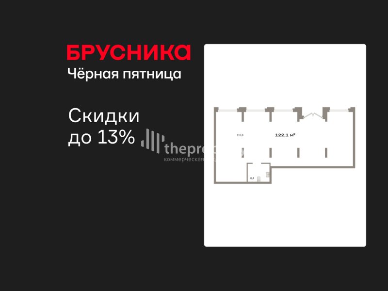 Помещение свободного назначения на 1 этаже, общая площадь 122.14 кв.м., без отделки. Стоимость помещения 30,110,000 руб., цена за кв.м 246,520 руб.