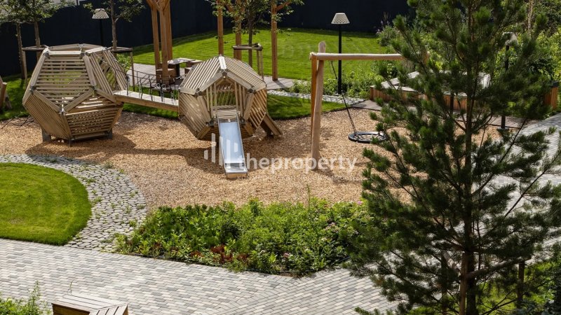 Проект благоустройства связывает приватные дворы кварталов, парковое пространство вокруг урбан-вилл, игровые комплексы для детей разных возрастов и спортивные площадки в единый ландшафт. Внутриквартальный двор тихий и спокойный. За счёт разной этажности и арок во дворе — много света. Здесь будет высажено до 40 видов растений — деревья, кустарники, цветы, злаковые травы и газон. Деревья привезут уже взрослыми со сформированной кроной. Растения цветут в разное время года, имеют разную плотность и высоту. Всё это сделано для того, чтобы двор был разнообразным и в каждое время года имел свой цвет. (AQID02527867)